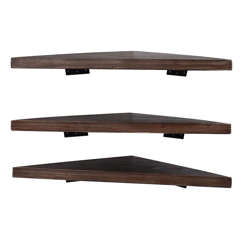 Round out your decor’s visual appeal with this charming 17in. 3-piece brown corner ledge shelf set. This wall art’s architectural details add a pop of pattern to your look, while the dark finish manufactured wood blends effortlessly into any color palette. Hang this simple corner shelving and it’ll finish out your space with wonderful coordinating decor.