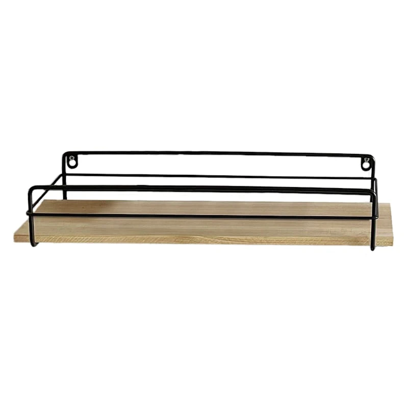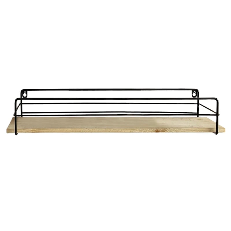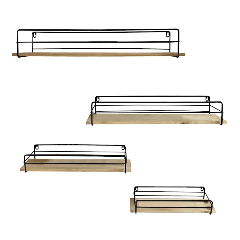 Round out your decor’s visual appeal with this charming 4-piece 28in. wood/metal wall shelf set. This wall art’s architectural details add a pop of pattern to your look, while the natural finish wood and black metal blends effortlessly into any color palette. Hang this simple shelving set and it’ll finish out your space with wonderful coordinating decor.