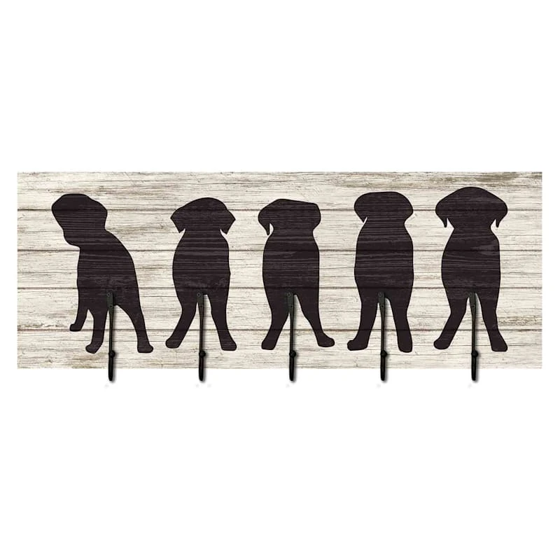 Round out your decor’s visual appeal with this charming 9x24in. dog butt wood plaque with hooks. This wall decor’s architectural details add a pop of pattern to your look, while the wood plank and four black tail hooks blend effortlessly into any color palette. Hang this piece inside or out and it’ll round out your space with wonderful coordinating decor.