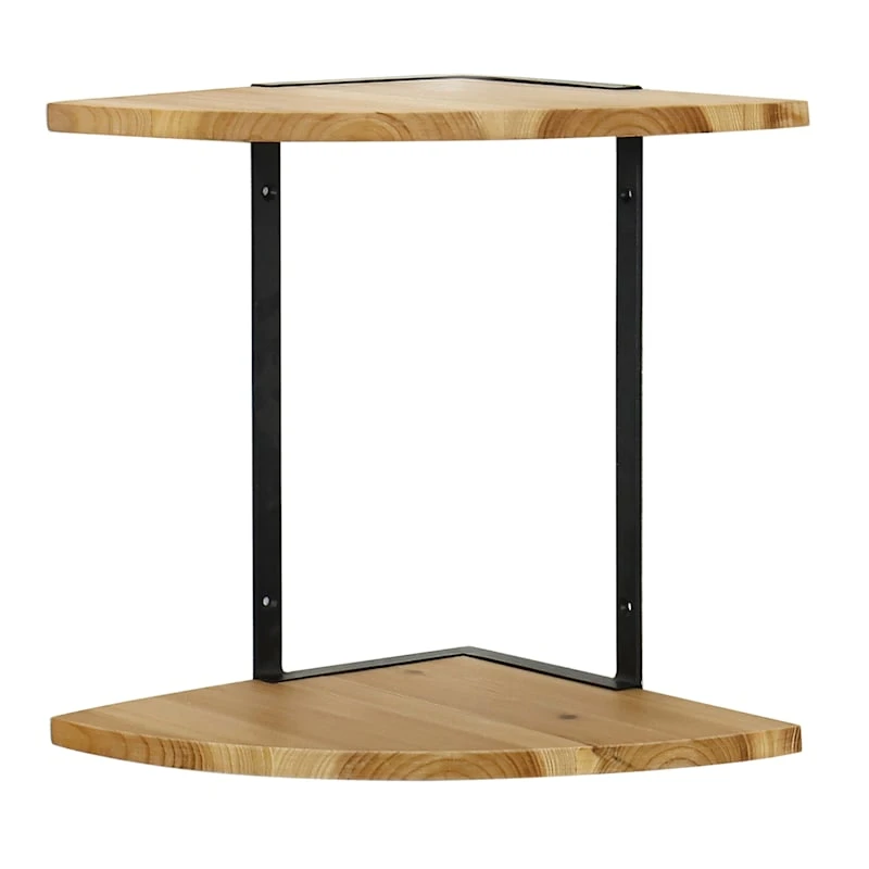 Round out your decor’s visual appeal with this charming 16x14in. natural bracket corner ledge wall shelf. This wall art’s architectural details add a pop of pattern to your look, while the natural manufactured wood and black metal blends effortlessly into any color palette. Hang this simple corner shelving and it’ll finish out your space with wonderful coordinating decor.