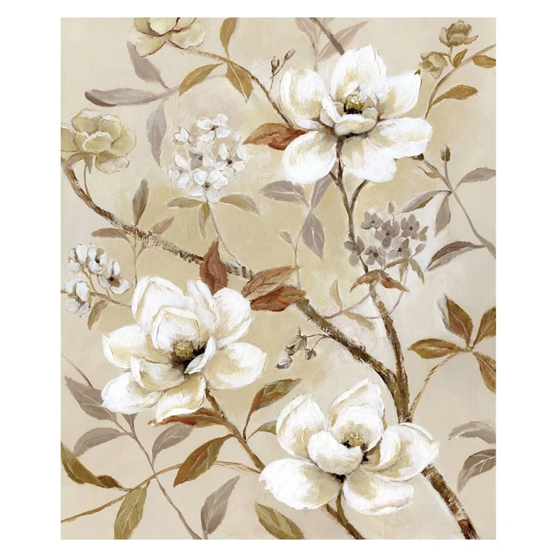 They say beauty is in the eye of the beholder. Art is too. Add a little character to any room in your home with our 20x24in. Chinoiserie canvas wall art. The possibilities are endless with this tan, ivory, taupe, grey and brown wall decor. A multicolor neutral chinoiserie floral motif creates visual interest against a visually interesting backdrop. Hang this wall decor to make a bold statement and to add a touch of personality to your home decor.