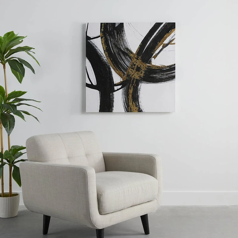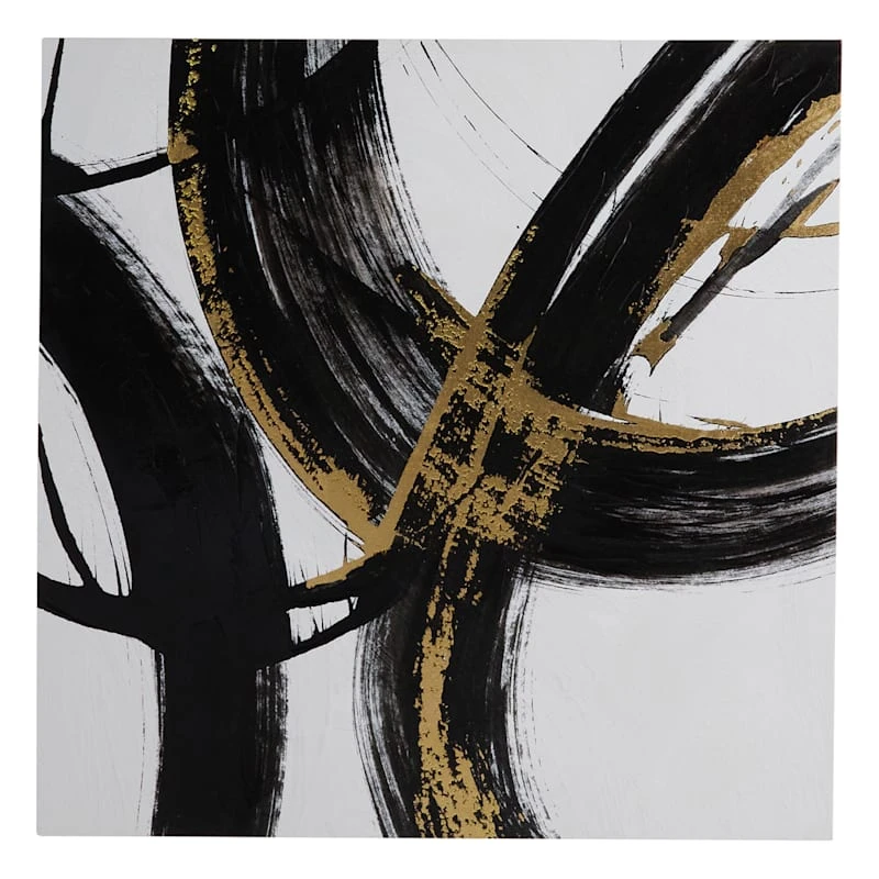 They say beauty is in the eye of the beholder. Art is too. Add a little character to any room in your home with our 36in. abstract canvas wall art. The possibilities are endless with this white, black and gold multi wall decor. A multicolor abstract black and metallic brushstroke swoop motif creates visual interest against a visually interesting backdrop. Hang this wall decor to make a bold statement and to add a touch of personality to your home decor.