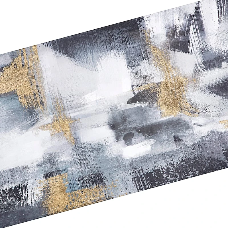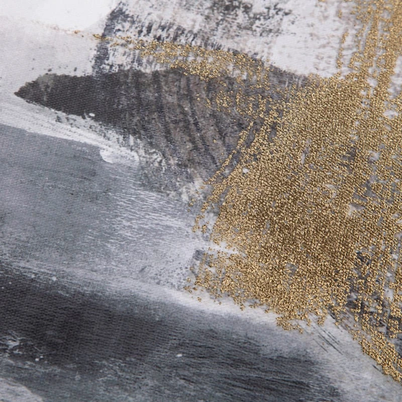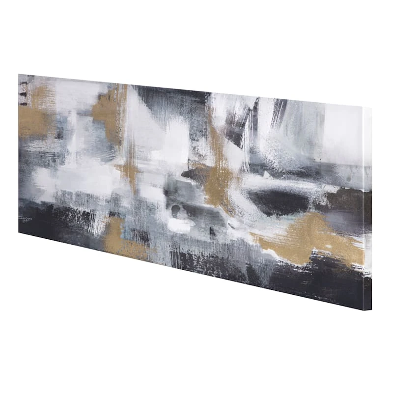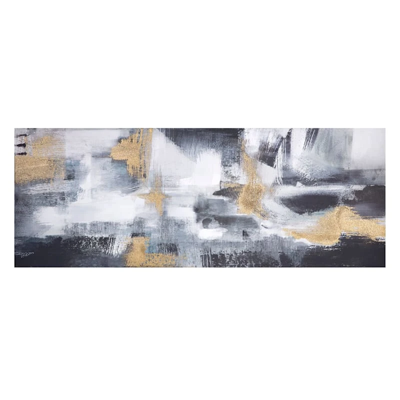 They say beauty is in the eye of the beholder. Art is too. Add a little character to any room in your home with our 48x18in. embellished grey and white abstract canvas wall art. The possibilities are endless with this grey, black, white and gold wall decor. A neutral brushstroke and metallic gold motif creates visual interest against a visually interesting backdrop. Hang this wall decor to make a bold statement and to add a touch of personality to your home decor.