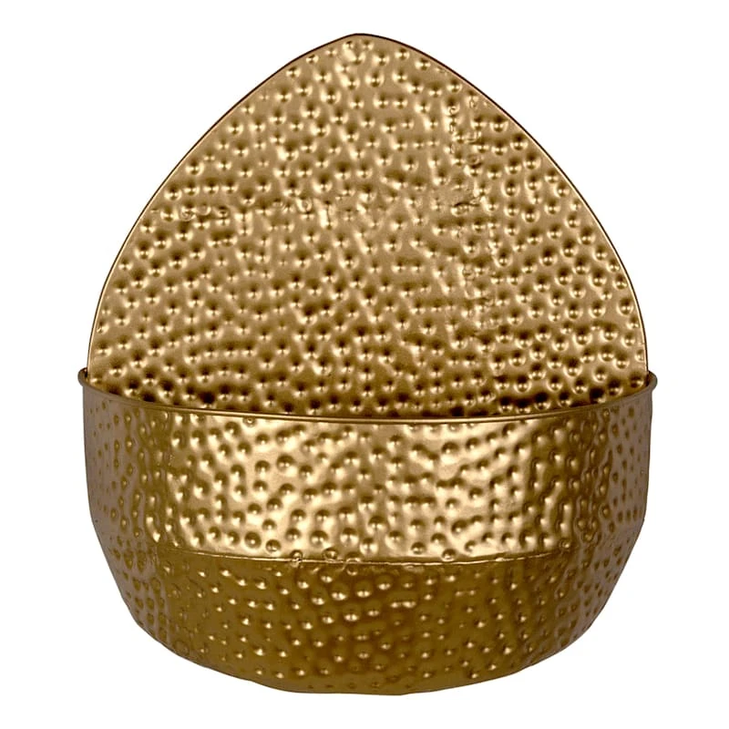 Add a pinch of charm to your interior walls or garden our 10x12in. gold textured wall planter. Created with love, this detailed pocket planter features allover hammer detailing. Everyone will enjoy wonderful artistic teardrop shape. Made of rust-resistant golden metal, this wall decor is designed to add to your décor in any room, the garden or around the patio.