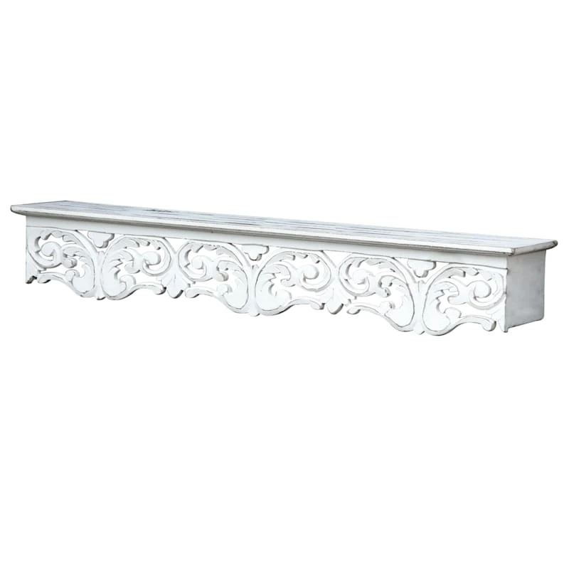 Curtis White Hand Carved Wooden Wall Shelf, 36×6
