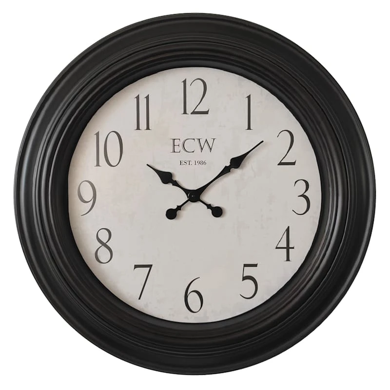 Distressed Black Classic Dial Round Wall Clock, 30"