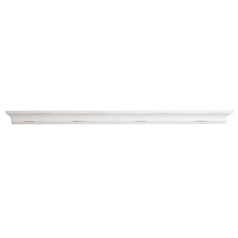 Round out your decor’s visual appeal with this charming 36in. distressed white wooden crown ledge wall shelf. This wall decor’s architectural details add a pop of pattern to your look, while the simple white hue blends effortlessly into any color palette. Hang this interesting modern shelving and it’ll finish out your space with wonderful coordinating decor.