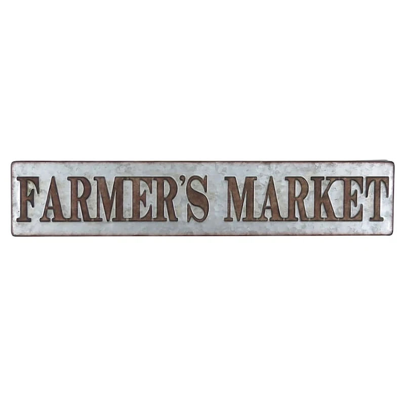 Farmers Market Metal Galvanized Wall Sign, 36×7