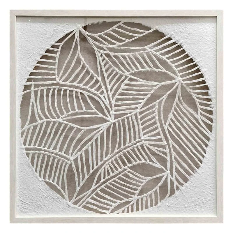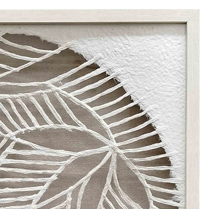 Found & Fable is a new collection that lets you explore what’s right around the corner. Choose your own adventure every day. Savor it all and say yes to what comes next – exclusively At Home. With a white and natural color palette, our woven leaf rice paper under glass print will create an inspiring scene in any room in your home. Add a touch of sophisticated personality with this 25in. print and place it in any living room to add peace and comfort.