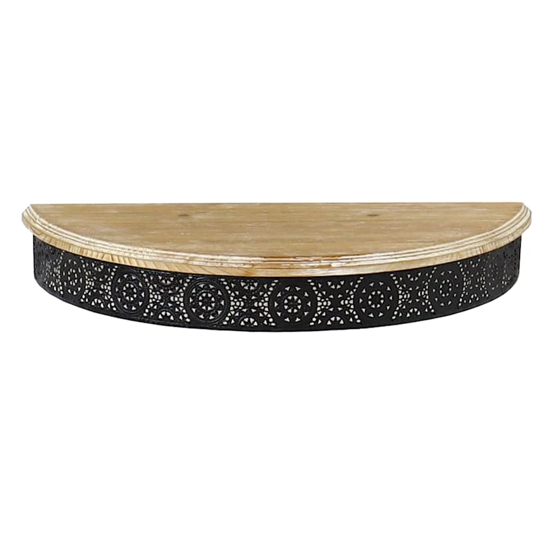 Found & Fable is a new collection that lets you explore what’s right around the corner. Choose your own adventure every day. Savor it all and say yes to what comes next—exclusively At Home. This 17x3in. ornate metal and wood wall shelf is not only for decorations to fill in any empty wall space, but it can also be used as a lovely stage for your favorite collectible figurines. This half circle wall shelf can be a great gift choice for your family or friends who like to collect wonderful what nots.
