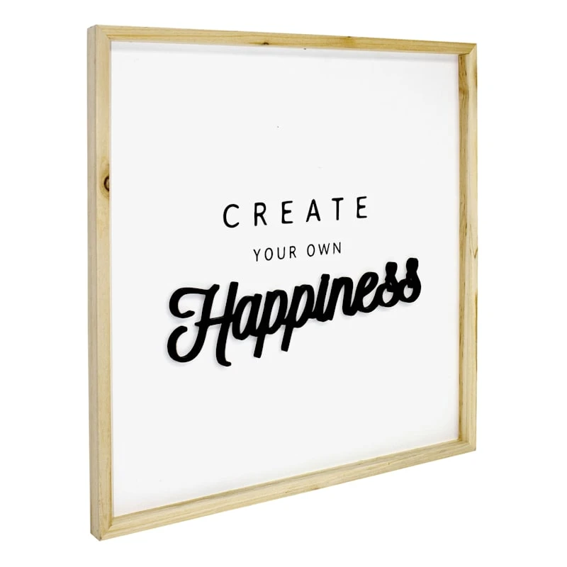 Framed Create Your Own Happiness Wooden Wall Sign, 21.43"