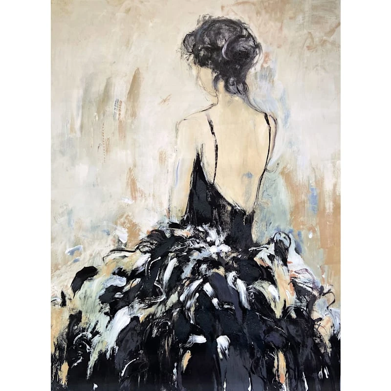 They say beauty is in the eye of the beholder. Art is too. Add a little character to any room in your home with our 30x40in. Frond Reflections embellished canvas wall art. The possibilities are endless with this black, tan, taupe, blue and ivory multi wall decor. A multicolor elegant woman motif creates visual interest against a visually interesting backdrop. Hang this wall decor to make a bold statement and to add a touch of personality to your home decor.