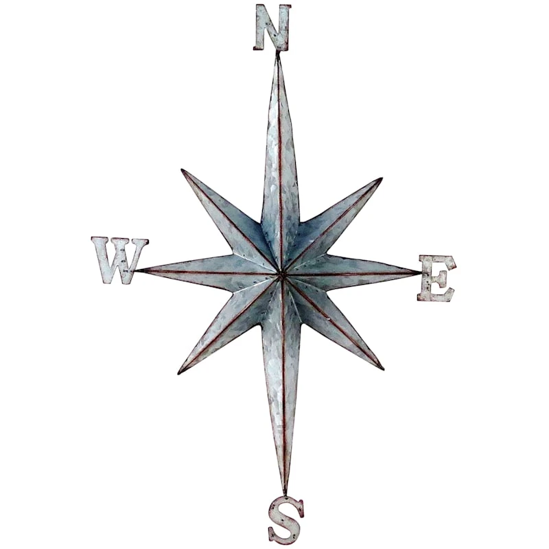 Galvanized Metal Compass Star Wall Decor, 15×22
