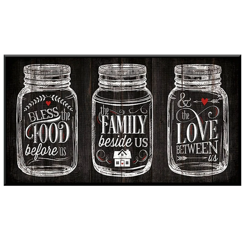 Glass Framed Bless The Food, Family, Love Wall Sign, 15×8