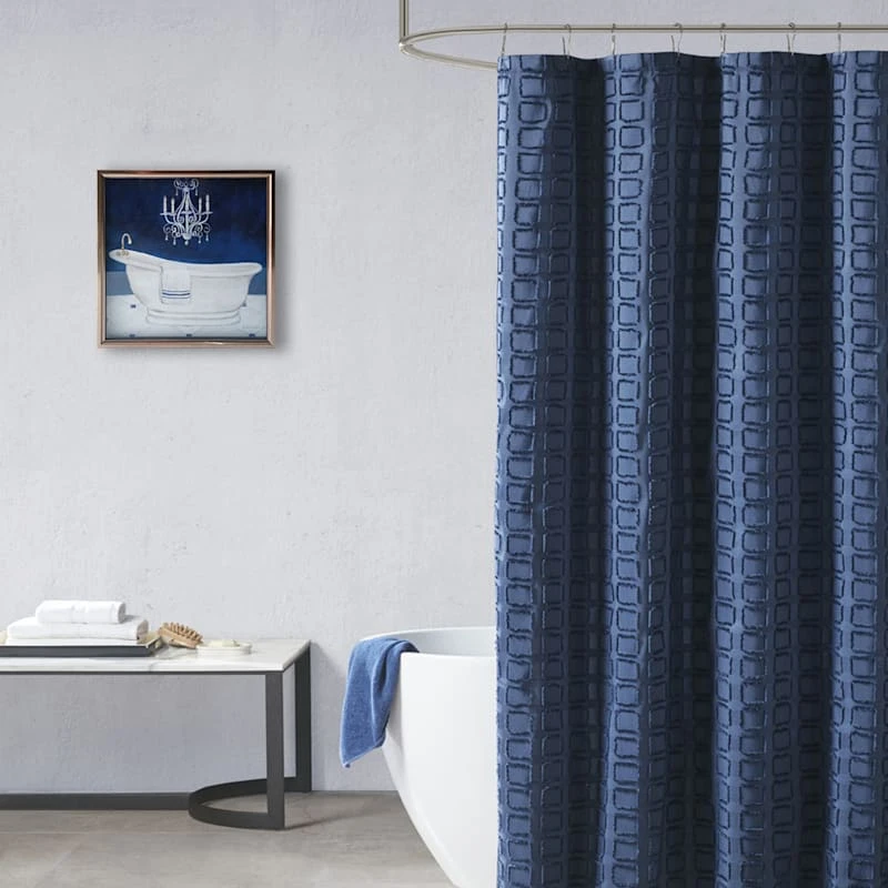 Glass Framed Navy Blue Bath I Embellished Shadowbox Wall Art, 13"