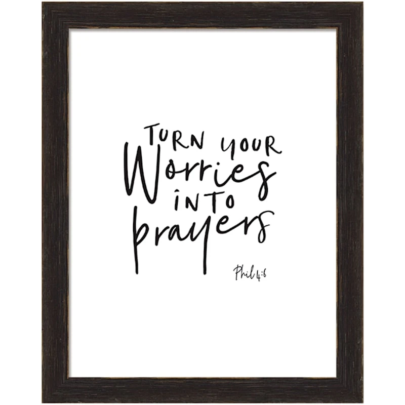 Glass Framed Turn Your Worries Into Prayers Wall Sign, 8×10