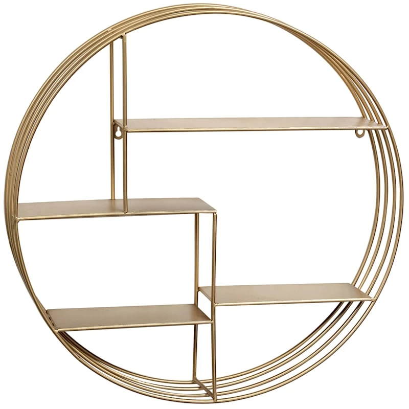 Round out your decor’s visual appeal with this 24in. gold round metal wall shelf. This wall decor’s architectural details add a pop of pattern to your look, while the circular metal and wood design and glam golden hue blends effortlessly into any color palette. Hang this interesting modern shelving and it’ll finish out your space with wonderful coordinating decor.