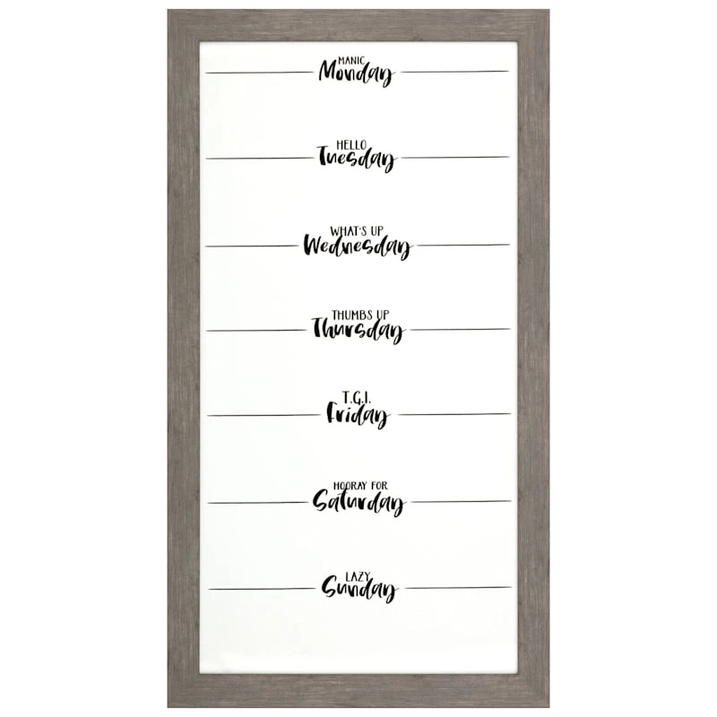 Grey Weekday Fun Sentiment Dry Erase On Glass Organizational Wall Frame, 15×28