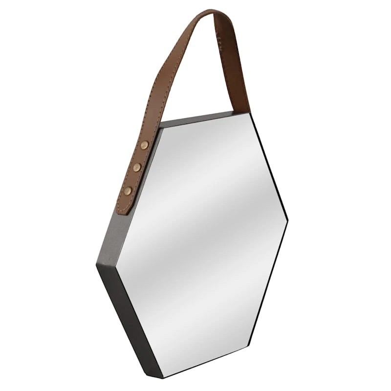 Mirrors just add a touch of glam anywhere they’re placed, and our 14x18in hexagon mirror with faux leather strap is no exception. Whether you’re looking at one last glimpse before you leave the house, or just brighten up your living spaces, adding a mirror like this one is a great option for a useful, decorative accent in your home. Reflect on this, our hexagon mirror with faux leather strap is a gleaming touch for any living space. And since mirrors have the added bonus of reflecting light, this piece, wall mounted or leaning is sure to make a living room or bedroom feel even larger.