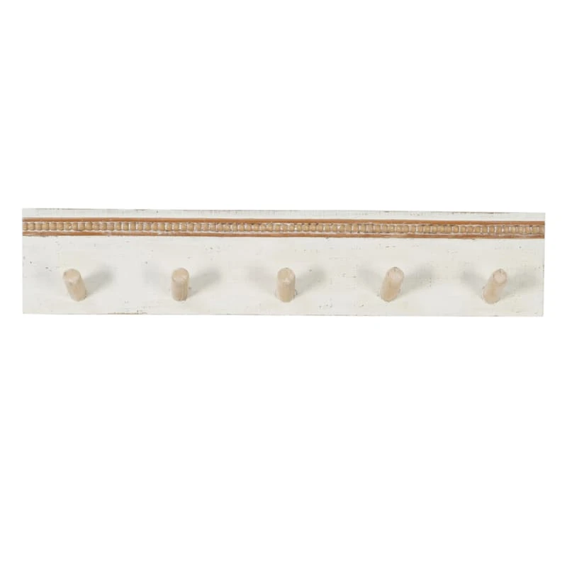 Honeybloom 5-Hook White Wooden Wall Hook, 24"