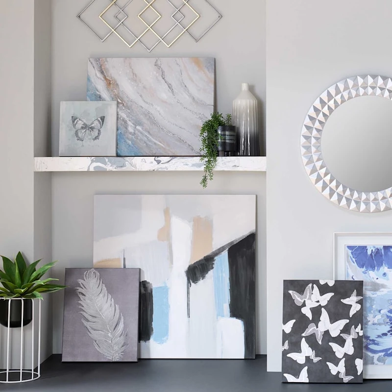Laila Ali brings the mindset of a world-champion athlete and passion for healthy living to create a modern lifestyle collection with serious style only found At Home. They say beauty is in the eye of the beholder. Art is too. Add a little character to any room in your home with our 16x20in. Grey Feather canvas wall art. The possibilities are endless with this grey, ivory and white multi wall decor. A neutral single feather motif creates visual interest against a visually interesting backdrop. Hang this wall decor to make a bold statement and to add a touch of personality to your home decor.