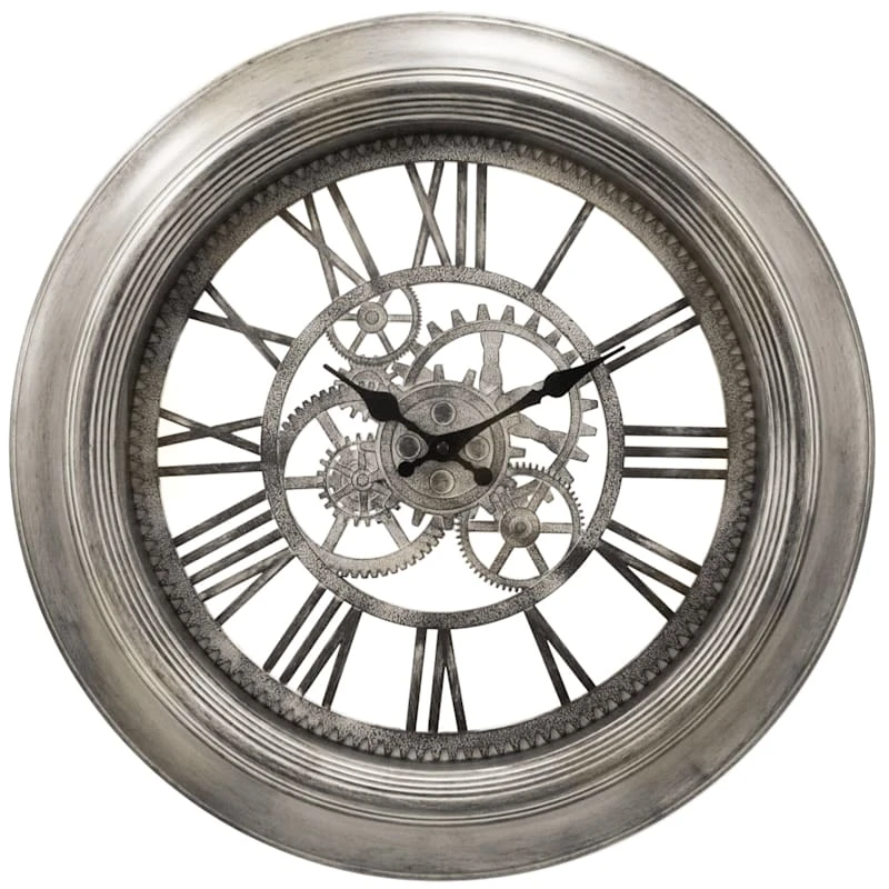Pewter Round Wall Clock With Cutout Gear, 20"