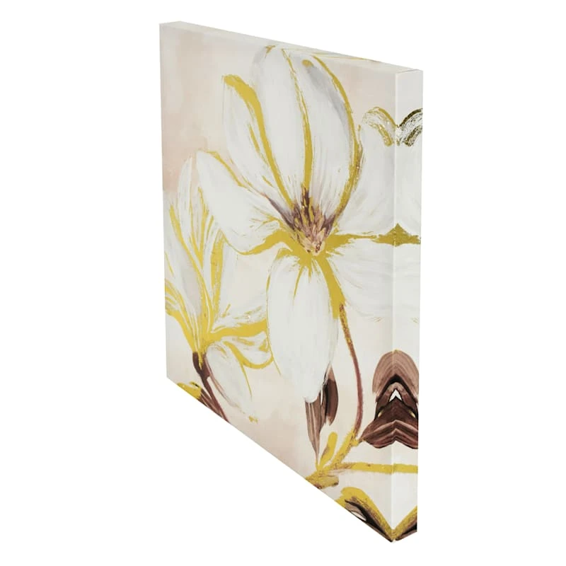 A collection that lets everyone relax in style. Polished finishes and classic hues pair with fun finds. Providence is where elegant settings still feel comfortable and warm—exclusively At Home. With an overarching floral in a multicolor palette this piece of artwork will add a dynamic feel to your home decor. This 16in. magnolia canvas wall decor has a hand-painted look in this wonderful colorway. This floral print is the perfect finishing touch to your getaway cottage or main residence alike.
