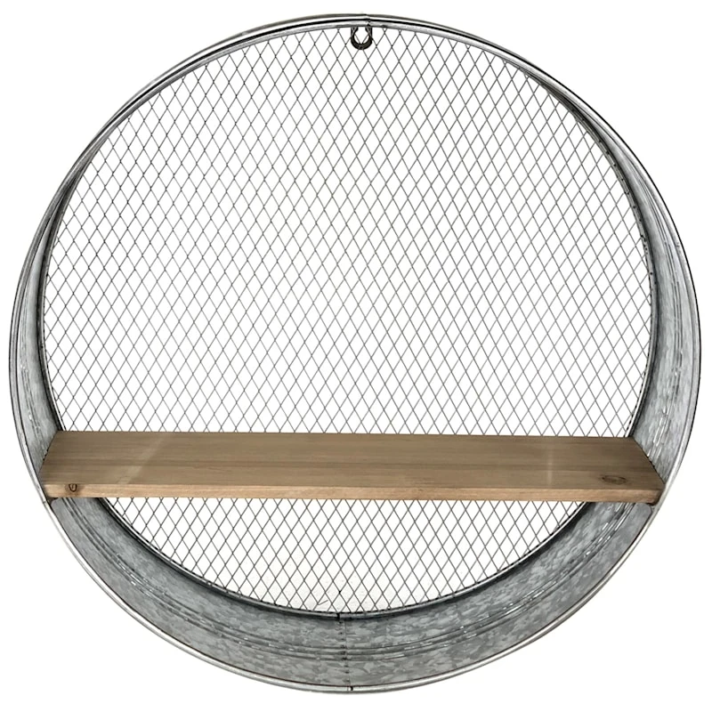 Round Metal & Wood Galvanized Wall Shelf, 20"