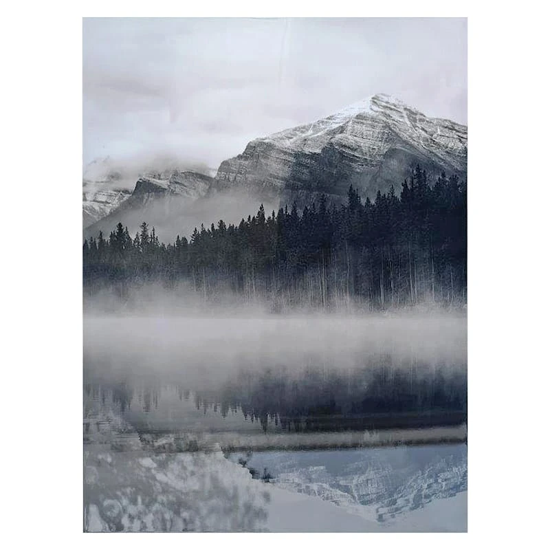 They say beauty is in the eye of the beholder. Art is too. Add a little character to any room in your home with our 30x40in. The Great Escape glass coat canvas wall art. The possibilities are endless with this grey, ivory, and black multi wall decor. A neutral mountain forest landscape motif creates visual interest against a visually interesting backdrop. Hang this wall decor to make a bold statement and to add a touch of personality to your home decor.