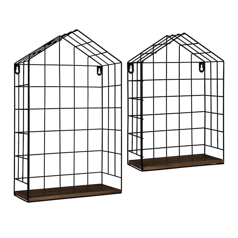 A jack of all trades, including graphic designer, carpenter, contractor, author and beloved reality TV host, Ty Pennington has curated a new and exclusive collection for At Home. Round out your decor’s visual appeal with this charming 2-piece 12x20in. wood and metal house wall shelf set. This wall art’s architectural details add a pop of pattern to your look, while the black caged metal and dark wood finish blends effortlessly into any color palette. Hang these unique shelves and it’ll finish out your space with wonderful coordinating decor.
