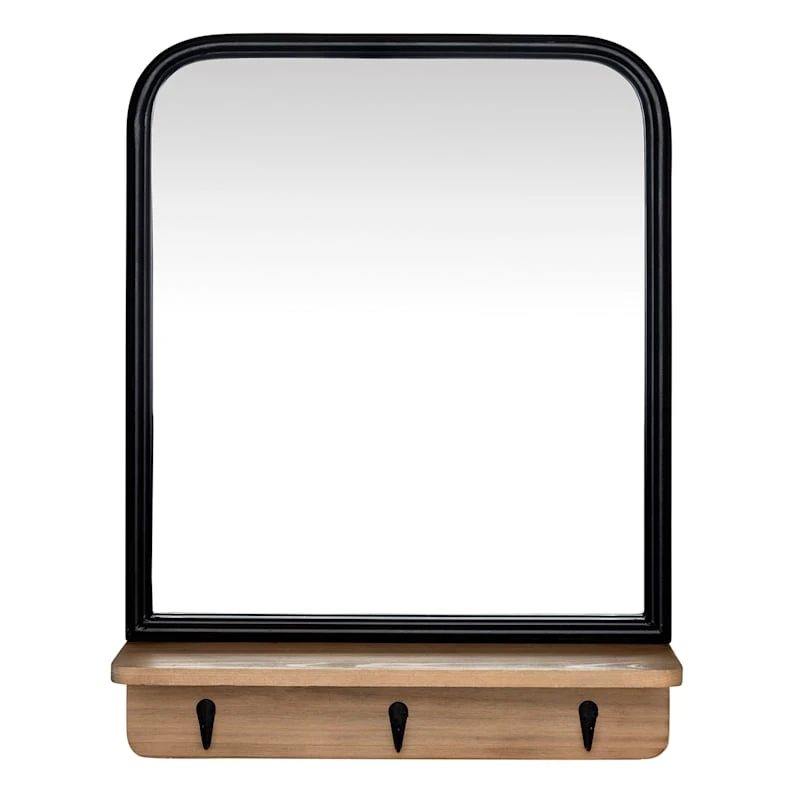 Ty Pennington Black Framed Wall Mirror With Shelf & Hooks, 15×20