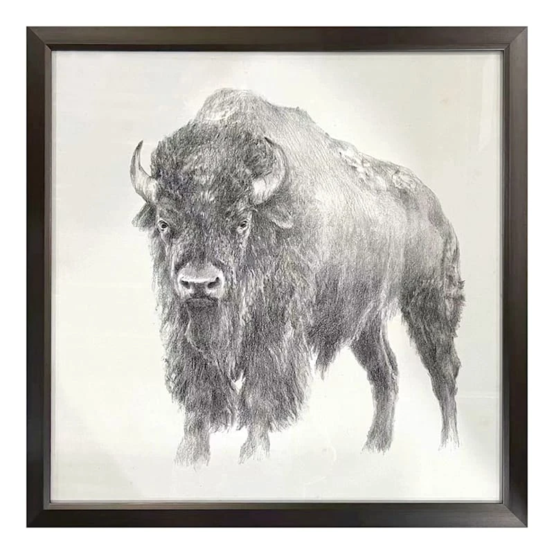 Ty Pennington Glass Framed Bison Print Wall Art, 26"