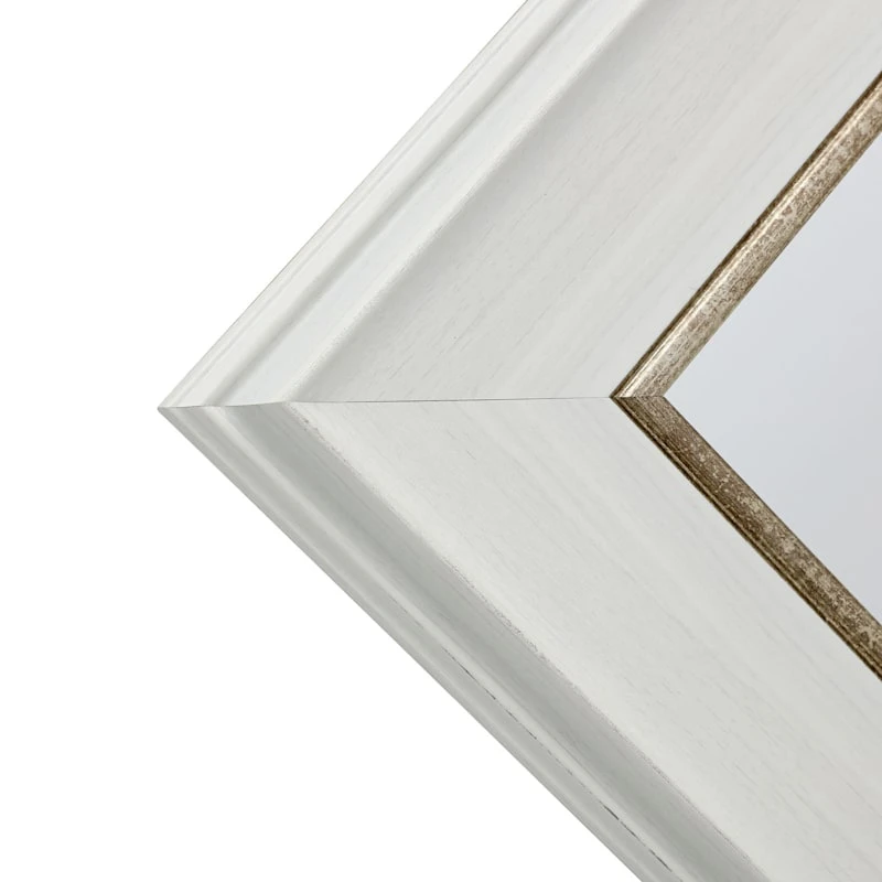 Mirrors just add a touch of glam anywhere they’re placed, and our 22x28in white with gold framed mirror is no exception. Whether you’re looking at one last glimpse before you leave the house, or just brighten up your living spaces, adding a mirror like this one is a great option for a useful, decorative accent in your home. Reflect on this, our white with gold framed mirror is a gleaming touch for any living space. And since mirrors have the added bonus of reflecting light, this piece, wall mounted or leaning is sure to make a living room or bedroom feel even larger.