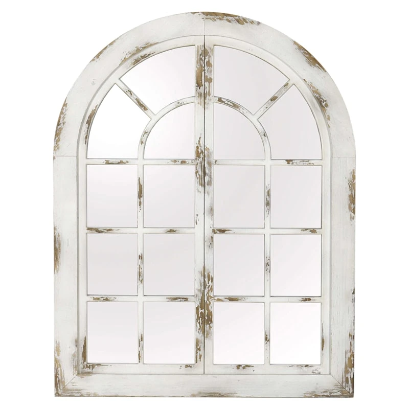 Mirrors just add a touch of glam anywhere they’re placed, and our 36x47in white wooden window mirror is no exception. Whether you’re looking at one last glimpse before you leave the house, or just brighten up your living spaces, adding a mirror like this one is a great option for a useful, decorative accent in your home. Reflect on this, our white wooden window mirror is a gleaming touch for any living space. And since mirrors have the added bonus of reflecting light, this piece, wall mounted or leaning is sure to make a living room or bedroom feel even larger.