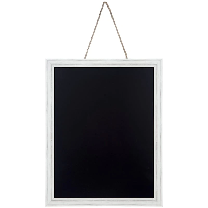 Our 12x16in. whitewashed ridged profile hanging chalkboard will help you keep your days organized. This decorative wall-mounted board has a working chalkboard surface surrounded by a molded frame with an attached rope for hanging. You also have the option to display horizontally or vertically to fit your needs. Use this framed chalkboard in your laundry room, kitchen, home office or anywhere you see a need.