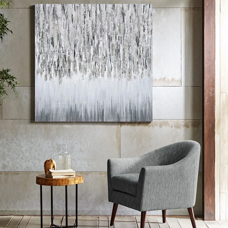 They say beauty is in the eye of the beholder. Art is too. Add a little character to any room in your home with our 39in. Winter Rain embellished canvas wall art. The possibilities are endless with this black, white and grey and silver multi wall decor. A multicolor abstract metallic motif creates visual interest against a visually interesting backdrop. Hang this wall decor to make a bold statement and to add a touch of personality to your home decor.